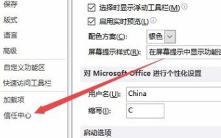 5、在打开的Wrod选项窗口中,点击“信任中心”菜单项。