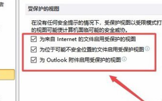 6、这时就会弹出受保护的视图的设置页面,取消下图中的三个选项即可。重新再打开Word文档就不会再弹了受保护的视图的提示了。