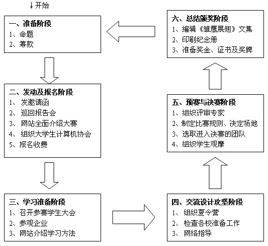 1、命题工作:命题工作是大赛的指挥棒,对大赛质量的好坏影响很大。大赛题目引导学生学习计算机新知识,激发学生的创新精神。题目要有可视性、观赏性及操作空间,在一定程度上反映了计算机学术界的水平。