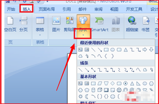 6、然后再找到插入,单击一下插入,找到形状,单击一下,找到中括号的形状,单击一下。