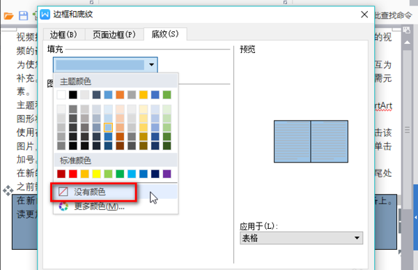 3、切换到“底纹”选项卡,点击“填充”旁边的小三角形,选择“没有颜色”或“无”。