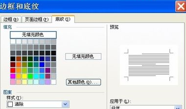 8、请单击"边框",再单击"底纹"选项卡,然后选择所需的"填充"颜色。