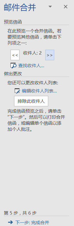 第五步预览信函中,我们可以在主页上查看不同姓名的信函,若要让自动生成的所有信函都显示出来,我们可以点击编辑单个信函。