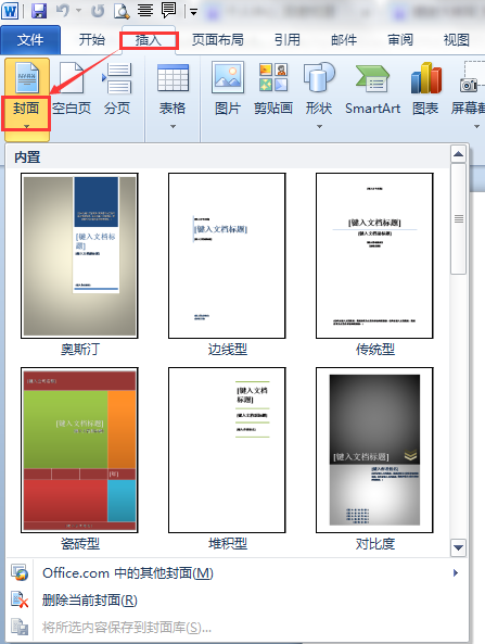 在Word中设计封面,可以使用Word 2010版本自带的封面,具体(Word 2010版本):