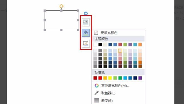 6、可以通过右侧的三个小图标来设置形状的颜色等。