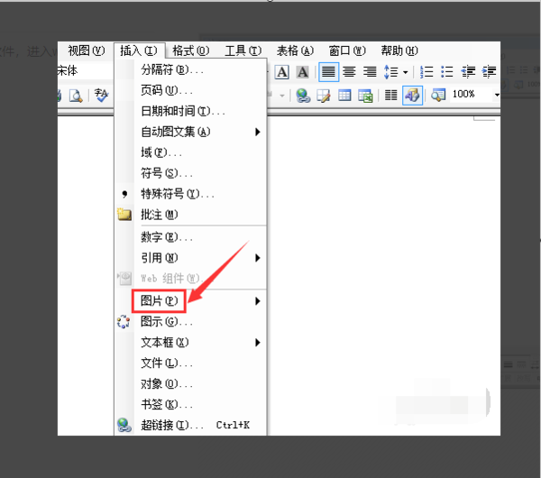 3、点击插入选项在其子级菜单里找到图片选项