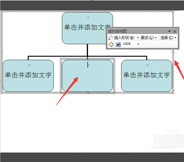 4、添加下级部门,选中这个部门的图形后,如图所示为这个部门添加下级部门