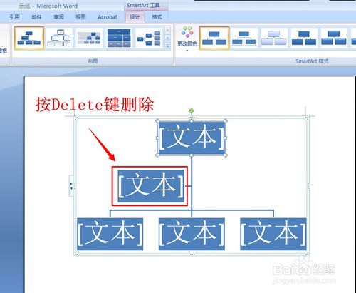 第二、然后我们可以选中下面其中的一个框图,按下Del键,而把多余的一个框图删除。