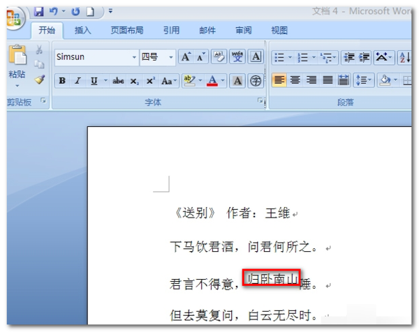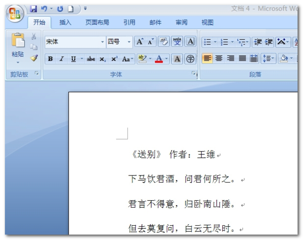 1、打开word文档,在文档里面输入唐诗《送别》。
