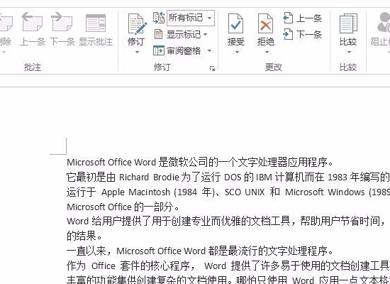 2、解除修订模式后,word文档中已经修订的部分并不会更改,只是不会再重新产生新的修订,此时在“审阅”选项下,选择“更改”窗口的“接受”键,点击“接受”键的下拉菜单,在菜单中选择“接受对该文档的所有修订”,点击后,文章中的全部修订皆被认可,不会再产生文字上面划横线的情况了。