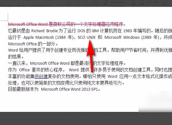 3、返回主文档,发现word文字中间的横线已经去掉。