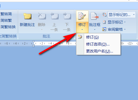 4、在审阅选项卡里面找到修订,点击修订的下拉按钮,在下拉菜单里面点击修订即可,这样就可以删除了。