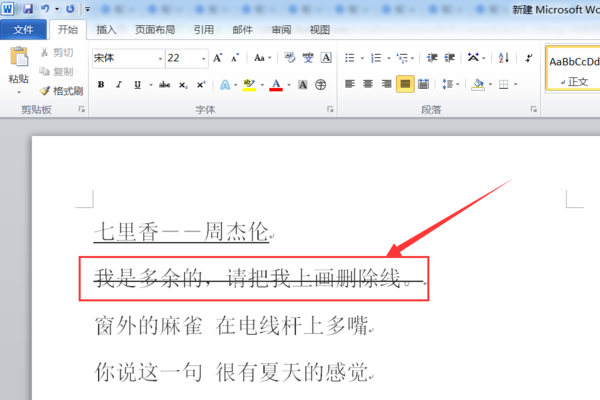 3、返回主文档,可以发现刚才选中的字体文本已经画上了横线删除线。
