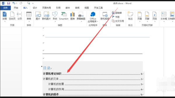 6.一会之后,就可以看到将刚才插入的文档文件合并过来了,合并的内容在文档文档后面。