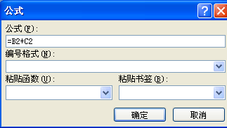 3、弹出公式对话框,在公式的输入框中输入:=B2+C2;