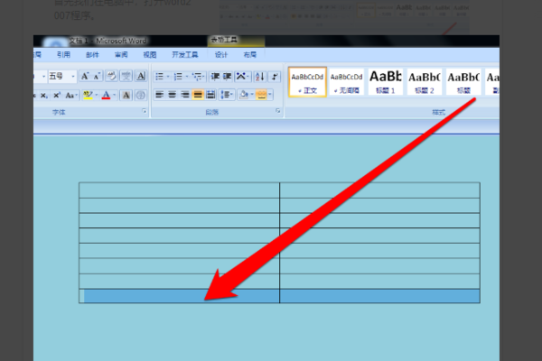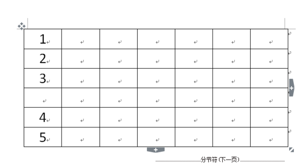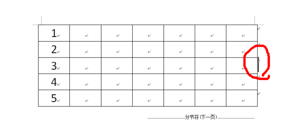 2、需要增加一行,将光标定位在表格最后一行右端(表格外)的回车符处;