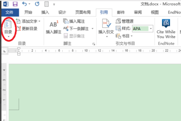 3、点击了引用之后,在文档的右上角,就可以看到有一个目录,点击此目录选项。