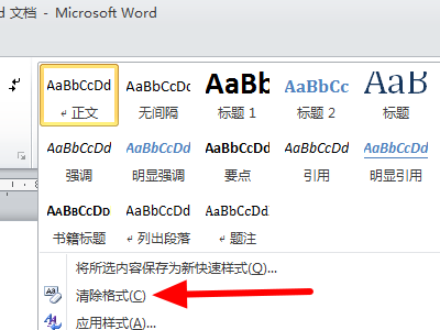 选中所有的字体,击菜单栏中的“样式”右下角的小箭头,选择全部清除,这样也可以清除所选文字的全部格式。