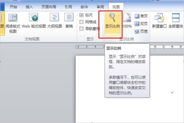 2、在视图的菜单栏里找到“显示比例”,点击;
