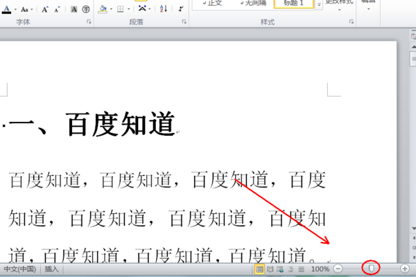 1、打开需要操作的WORD文档,点击右小角的缩放滑块。