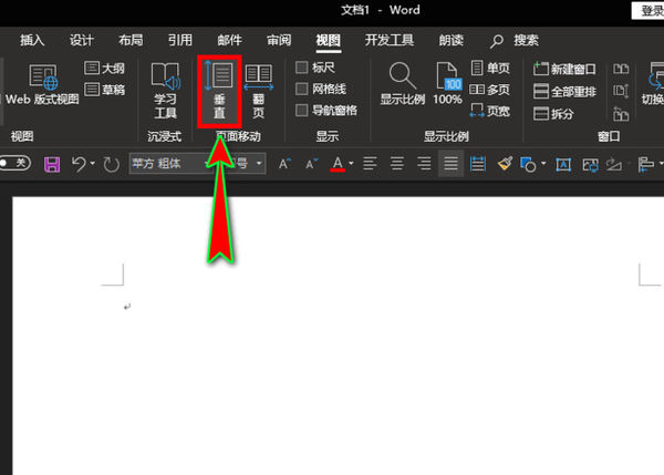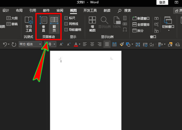 5、在“页面移动”选项组里,直接点击并选择“垂直”页面模式选项。