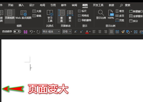 6、点击“垂直”模式后,就可以看到word页面显示变大了,且右下角的显示比例滑块此时也能正常拖动。