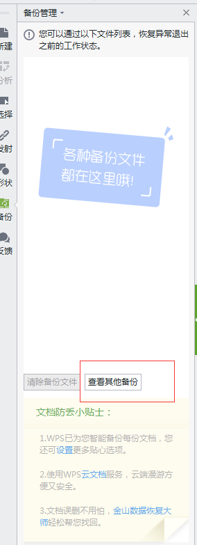 你看看备份有没有。点开WPS文字--工具-备份管理