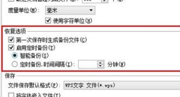 式实现的,因此如果要减少损失,就要在Word中依次点击“工具→选项→保存”,然后选中“自动保存时间间隔”项,接着将默认的10分钟改为5分种或更短