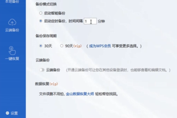 4、点击左下角的“设置”,勾选“启动定时备份”,根据个人情况设置时间间隔。