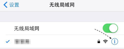 2、在无线局域网列表中,找到已经连接的网络。点击无线网络右边蓝色的箭头符号,进入网络设置。然后点击上面的“忽略此网络”,在弹出的确认菜单中选择“忽略”。