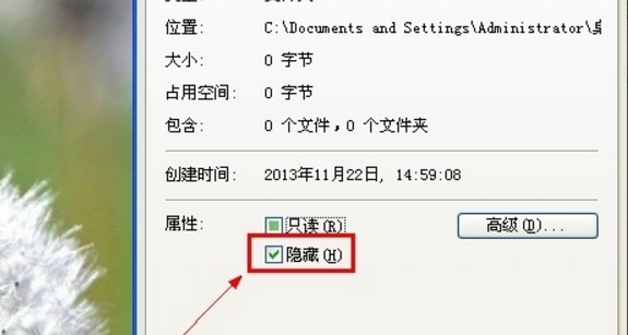 4.除了第一种分享的搜索方法之外,第二种方法就是您的电脑是否被别人用过,或者您的文件夹是不是比较隐秘,是个人隐私,不想被别人看见,然后您几天前隐藏了,那么按照小编的方法,找到属性然后看有没有勾选隐藏的那个选项,如图所示,如果勾选了去掉勾,即可显示文件了。