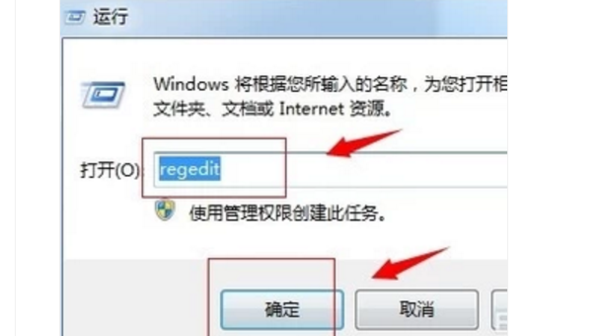 2.在运行程序的输入框中输入“regedit”点击确定。