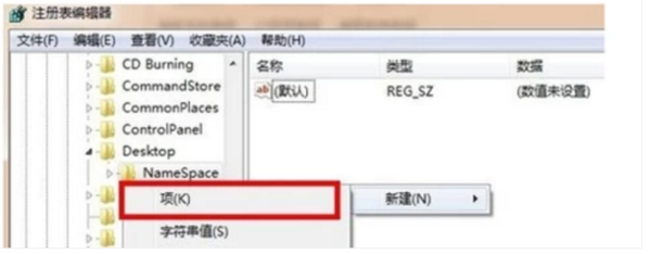 7.点击新建项后,出现如下界面,将新出现的项的名字(红色框框内显示)重命名为“{645FFO40——5081——101B——9F08——00AA002F954E}”------------请注意,要把大括号也带入。