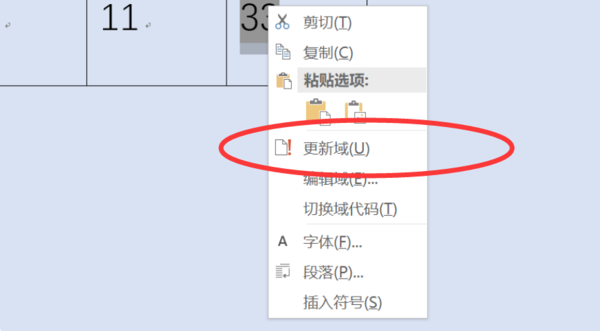 4、或者可以选中计算结果并点击鼠标右键,选择打开选项中的“更新域”。
