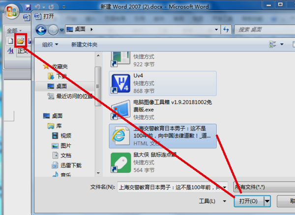3、然后打开word软件,在软件中打开刚刚保存的html文件。