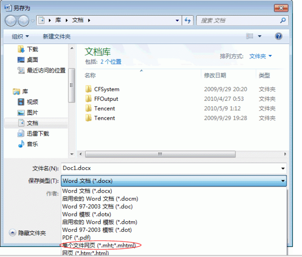 4、然后点击打开Word文档左上角文件中的额“另存为”,点击保存类型选择“Word文档”,之后回车确定即可。