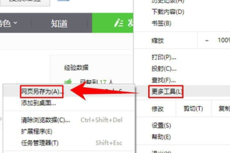 1、首先我们打开百度浏览器,选择需要保存为Word文档的网页,点击打开右上角的更多工具中的“网页另存为”。