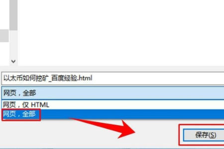 2、然后我们在弹出来的窗口中点击打开“保存类型”,选择“网页,全部”,之后点击保存。