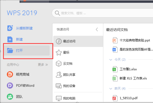 2,、打开Word软件后点击页面左上方的打开选项,选择需要打开复制的Word文档。