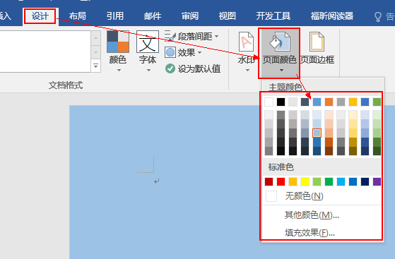 3,接着,设置word的纸张颜色,选择要设置的颜色。