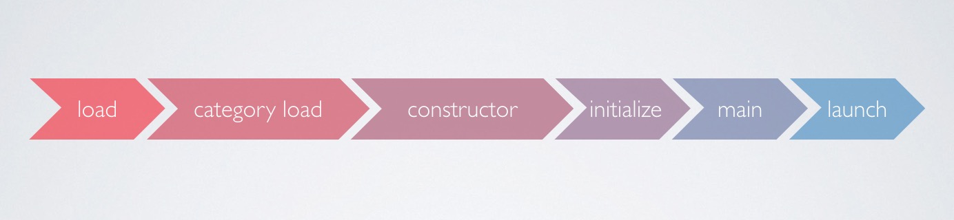 从应用图标被用户点击开始,直到应用可以开始响应发生了很多事情。正常来说,尽管我们希望crash监控工具启动的尽可能早,但接入方往往总是等到launch事件之后才能启动工具,而在这个时间之前发生的崩溃就是启动crash,下面列出了在应用直到launch时,存在的可能发生启动crash的阶段: