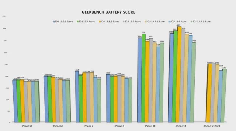 从目前网友的反馈来看,ios 13.6.1 在稳定性方面表现不错,也没有明显的发热问题。博主 iapplebytes 一向热衷于测试每个 ios 新版本的续航表现,最近又对 ios 13.6.1 进行了续航测试,并且和前几个系统版本进行了对比。