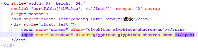 在jsp页面中我们只需要在字段中嵌入这两div就可以实现视觉上的升序或降序,真正实现排序的是字段上面的那个点击事件,事件的执行方法在上面的脚本中都已经写好了,就这么简单,你就实现了表格数据的本地排序,大大的减少了与服务器之间的访问次数。