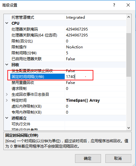 如果网站挂载在iis里,那么,httpruntime.cache配置超时时间的地方在该网站的应用程序池中,如下图: