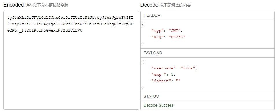 jwt的code与解析后的内容如下图所示,左边未code,右边未解析的内容。
