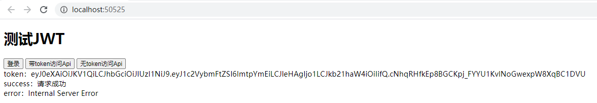 现在我们编写测试页面,这里我们实现三个按钮,登录、带token访问api、无token访问api。