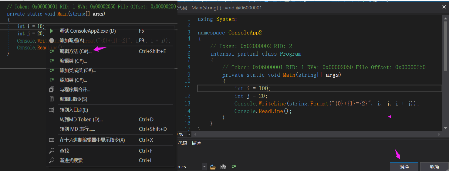 为了更好的理解通过 dnspy 修改,先来聊一聊 dnspy 最便捷的修改 dll 的方式:编辑方法,这种方式非常方便,无需理解 il 代码,为了演示,我举一个简单的加法运算。
