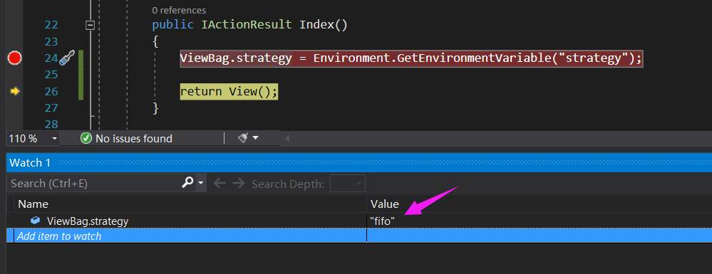 在 浏览器中键入: http://192.168.142.130/home/index ,可以看到我的 c# 代码被命中,也顺利的拿到了远端机器的 环境变量,问题也就迎刃而解。