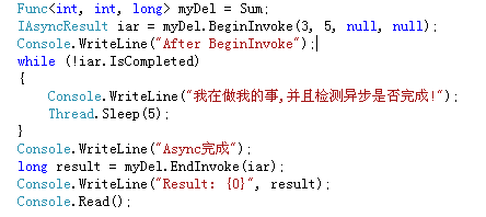 既然我们已经看到了begininvoke和endinoke的最简单形式,可以进一步了解iasyncresult了,它是使用这些方法的必要部分。