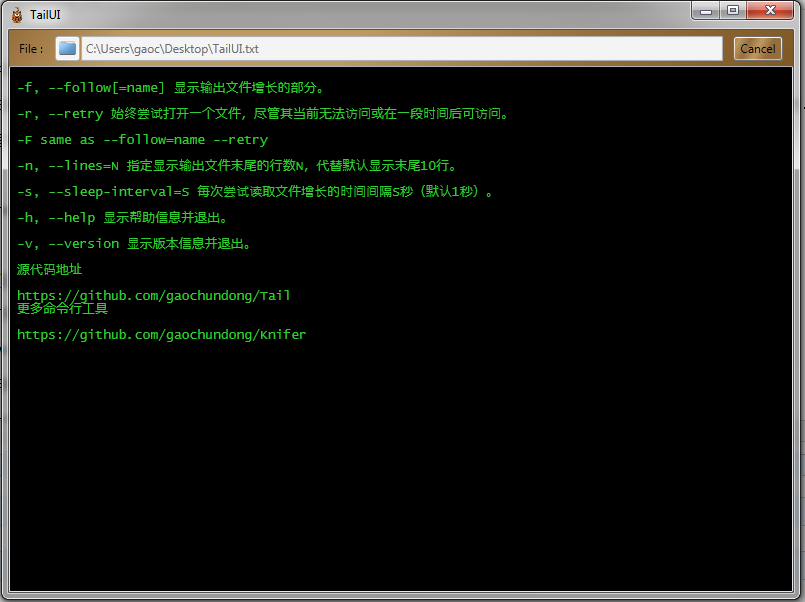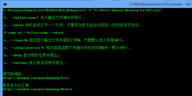 https://github.com/gaochundong/tail更多命令行工具